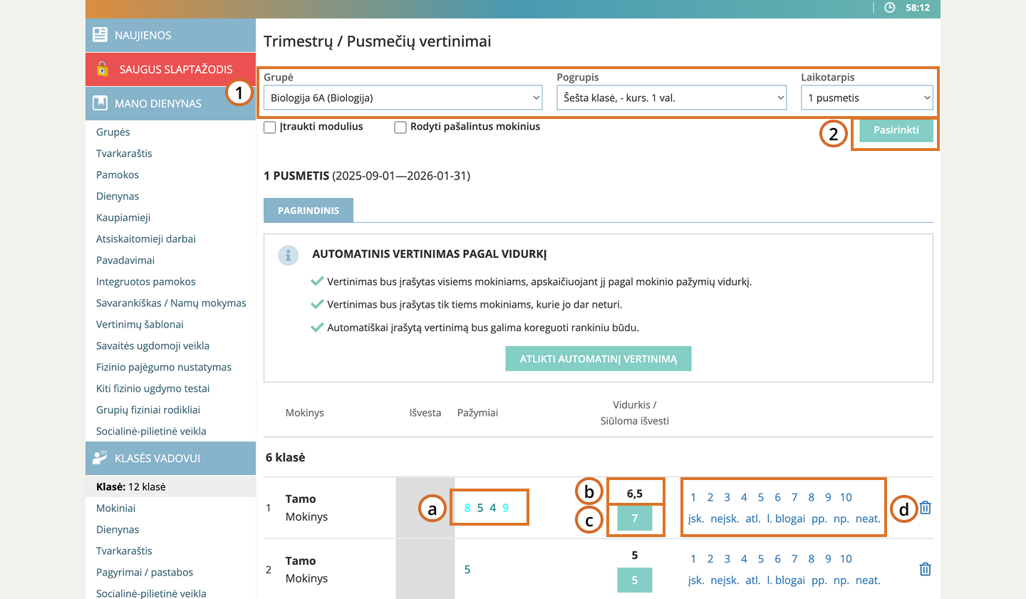 Automatinis laikotarpio vertinimo įvedimas 5–12 klasių mokiniams