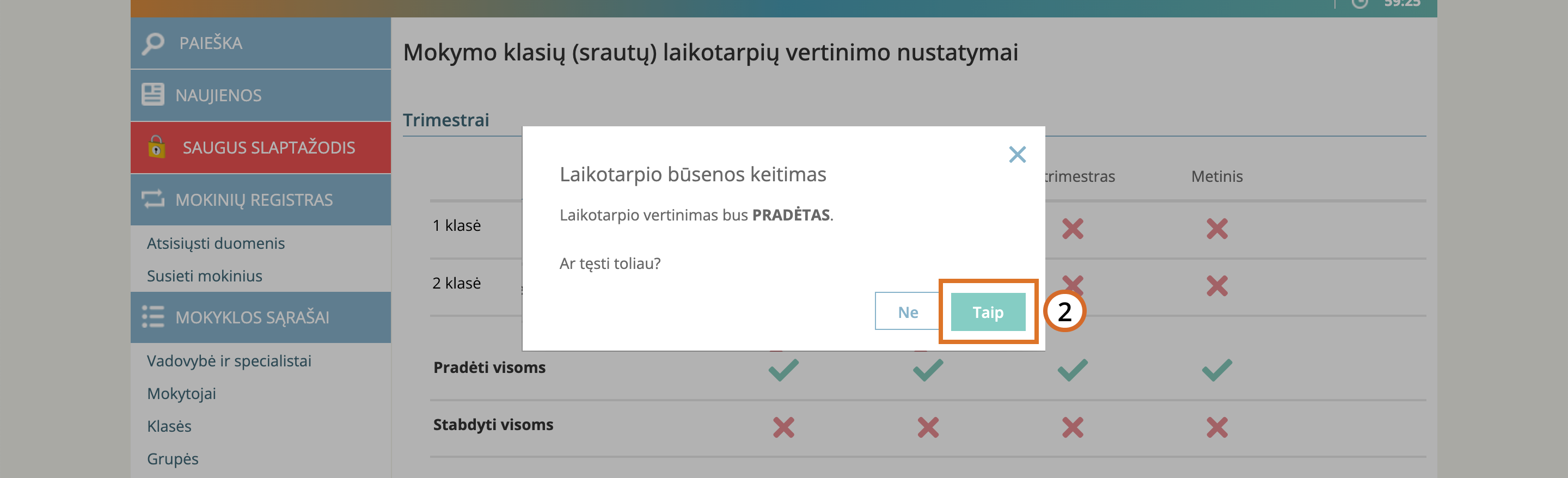 Norėdami aktyvuoti laikotarpio vertinimą visoms klasėms: